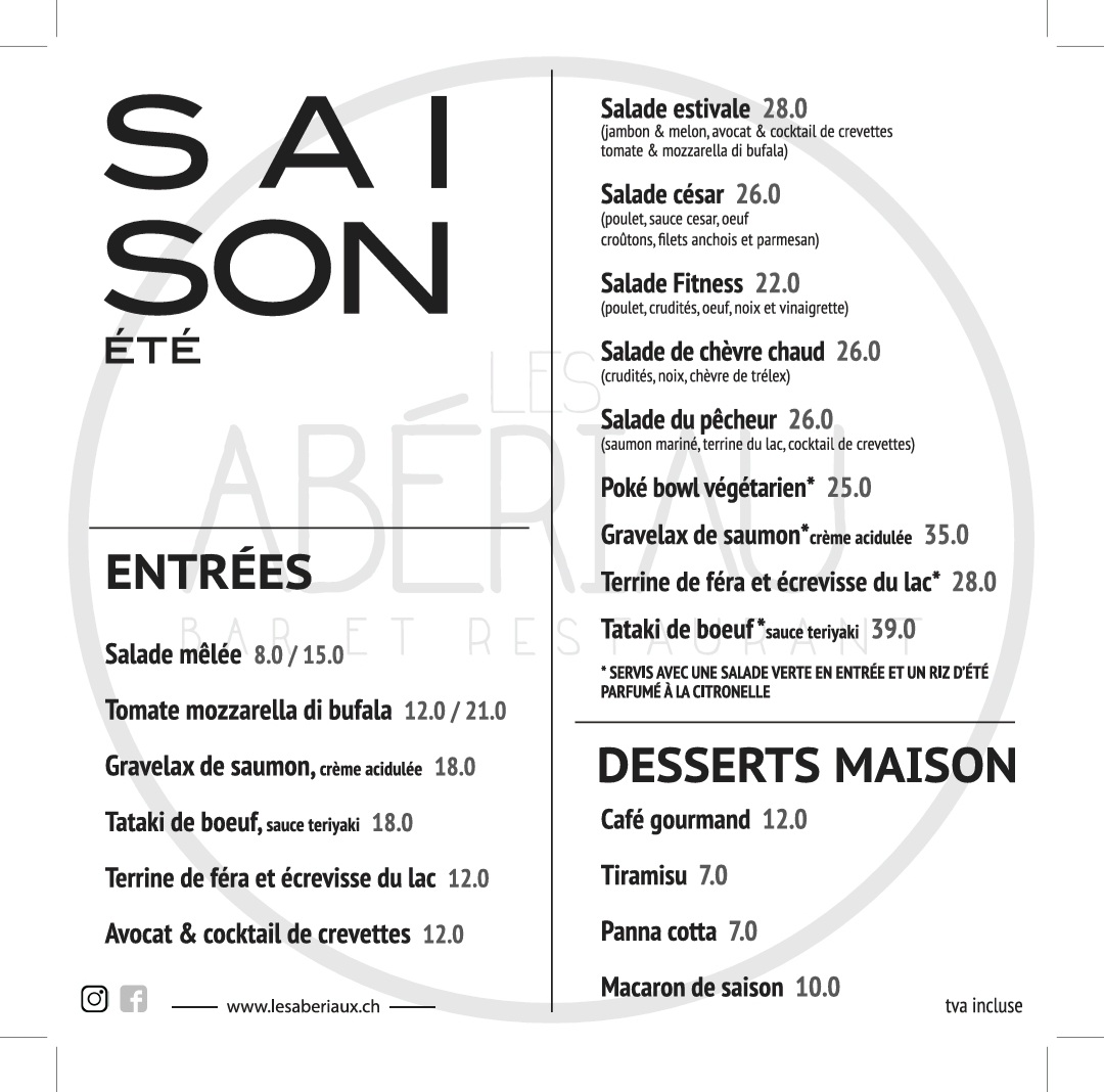 Les menus Abériaux et Abérial sont sur réservation et pour les groupes à partir de 10 personnes uniquement.